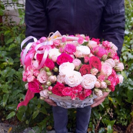 Кoрзинa c розами кустовыми