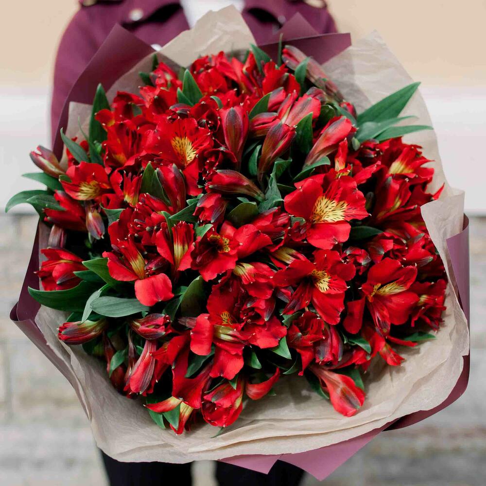 25 красных альстромерий