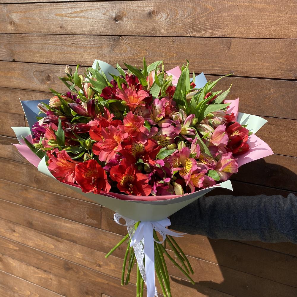 Лента атласная – 1 шт.Упаковка дизайнерская – 2 шт.Альстромерия Микс Европа – 23 шт.