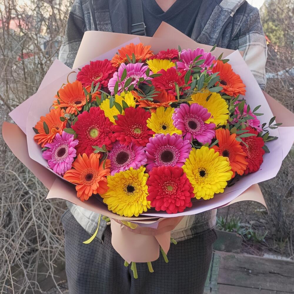 Букет из 25 разноцветных гербер