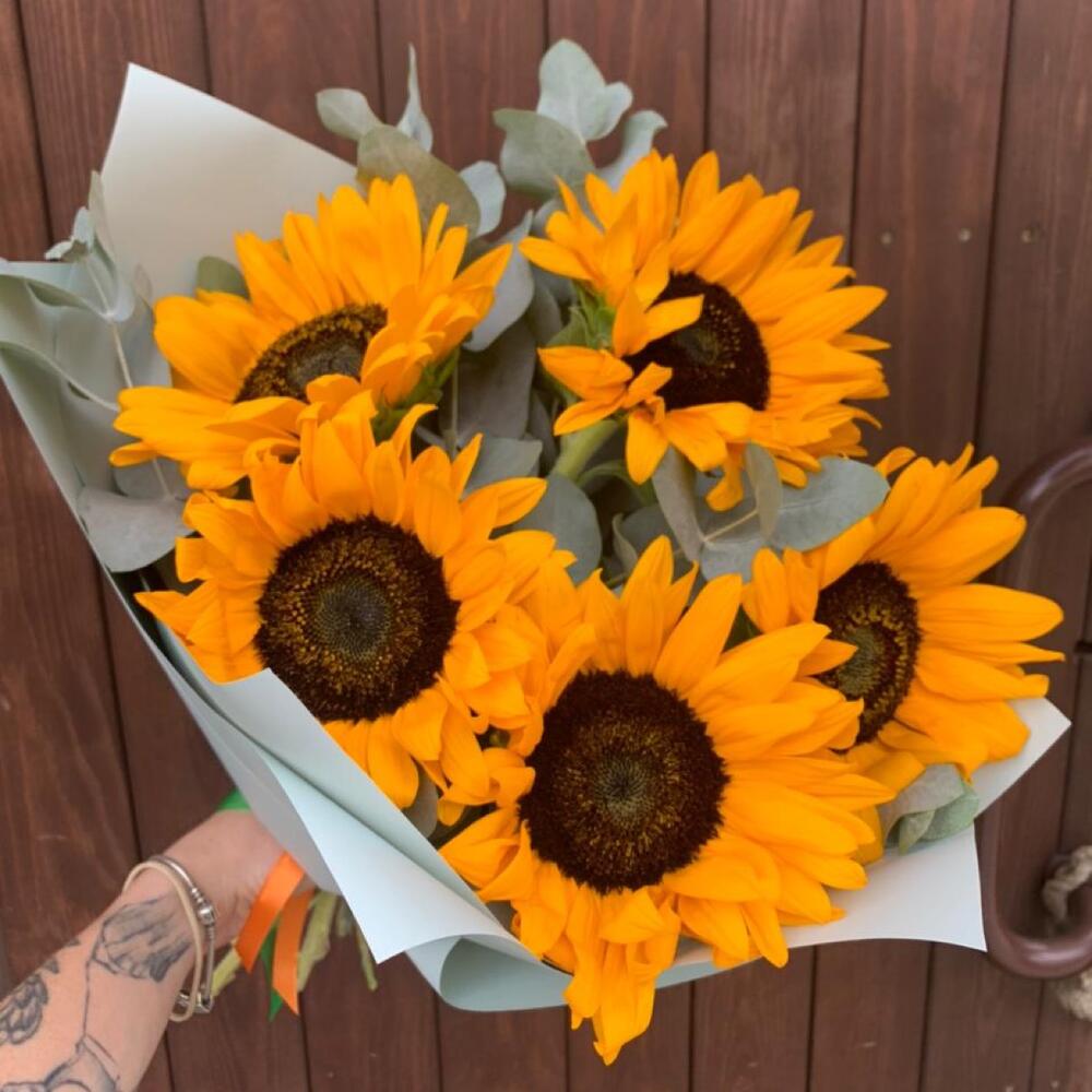 БУКЕТ ИЗ ПОДСОЛНУХОВ НА КРАФТЕ 5 шт