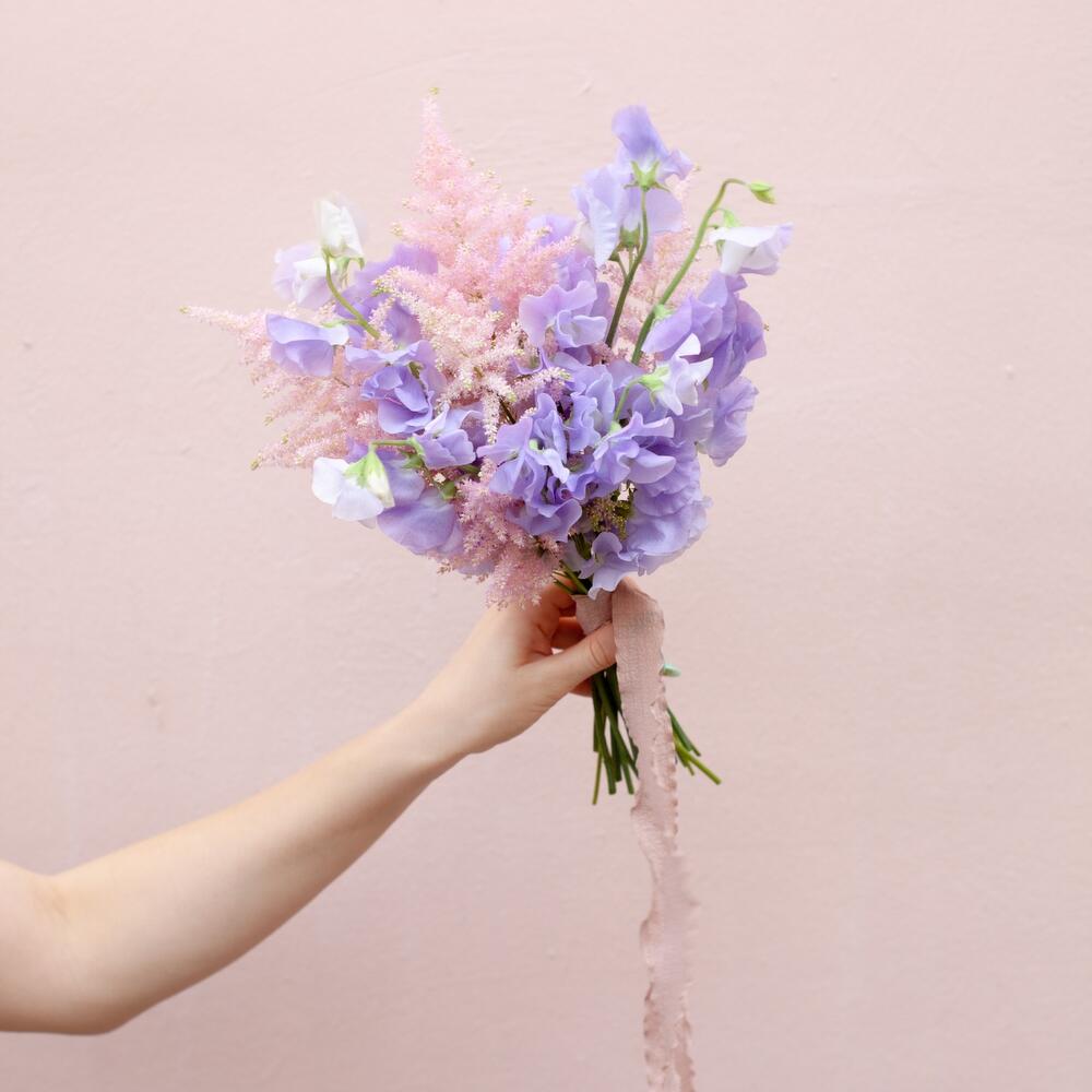 Латирус – 13 шт.Астильба – 5 шт.сумка переноска – 1 шт.ваза крафт – 1 шт.