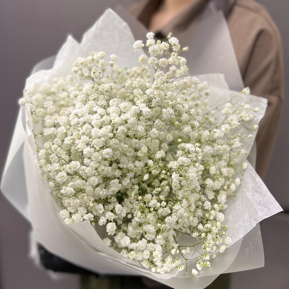 Гипсофила – 5 шт.Лента атласная – 2 шт.Тишью – 3 шт.Пленка матовая – 4 шт.