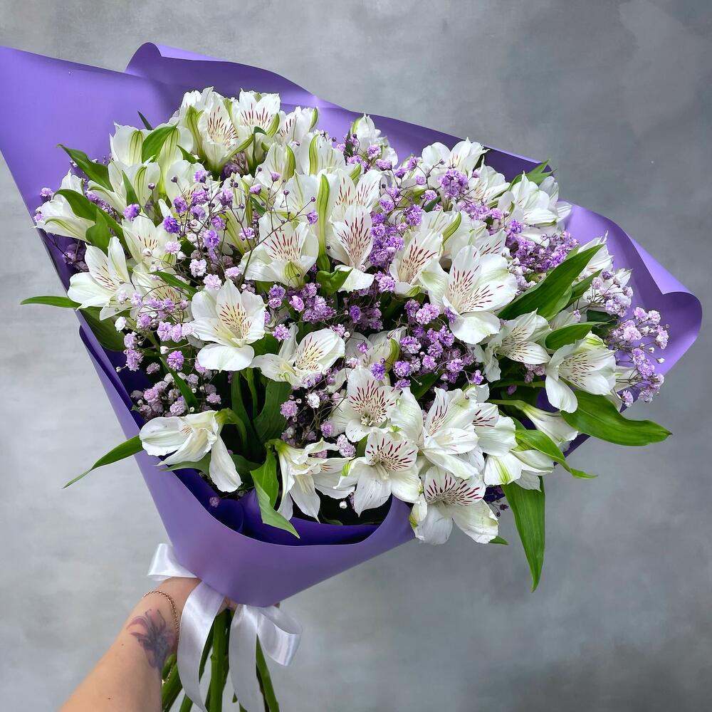 Альстромерия – 9 шт. Упаковка – 1 шт. гипсофила сиреневая – 4 шт.