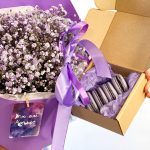 «Лавандовое созвездие» Букет из розы, гвоздики, статица и хлопка