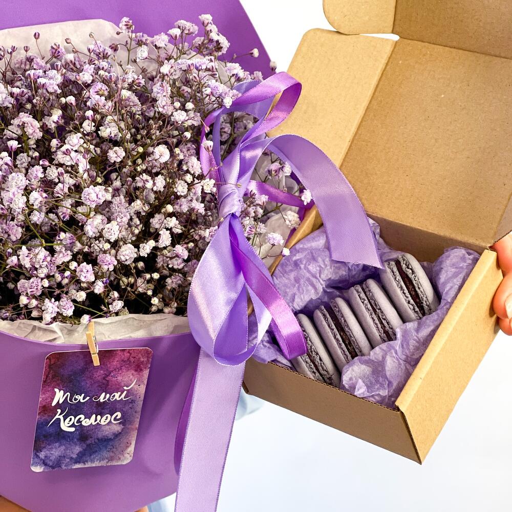 Букет из воздушной гипсофилы с макарунами «Ты мой космос "