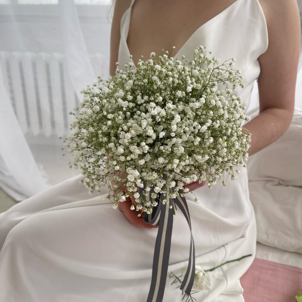 Лента атласная – 1 шт.гипсофила белая – 11 шт.