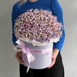 “Сиреневый туман” – композиция из гипсофилы в шляпной коробке