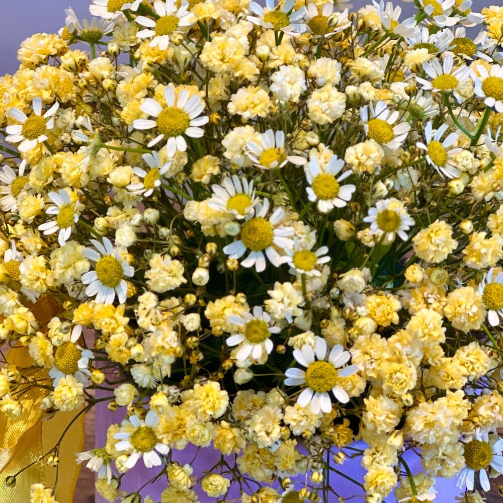 Гипсофила и ромашки в коробке