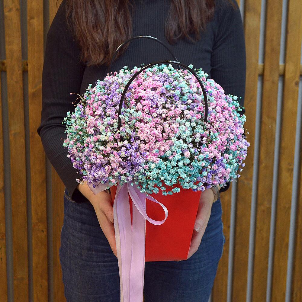Яркая гипсофила в красной коробке