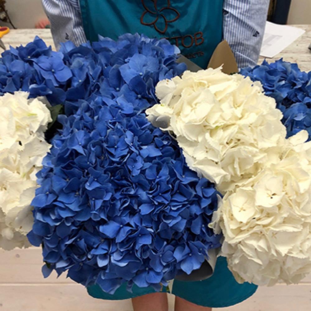 Гортензия – 7 шт.дизайнерская упаковка и атласная лента – 1 шт.