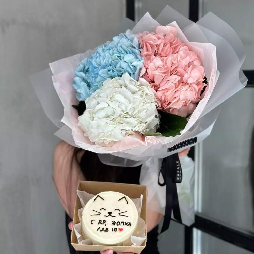 бенто торт – 1 шт. Гортензия – 3 шт.