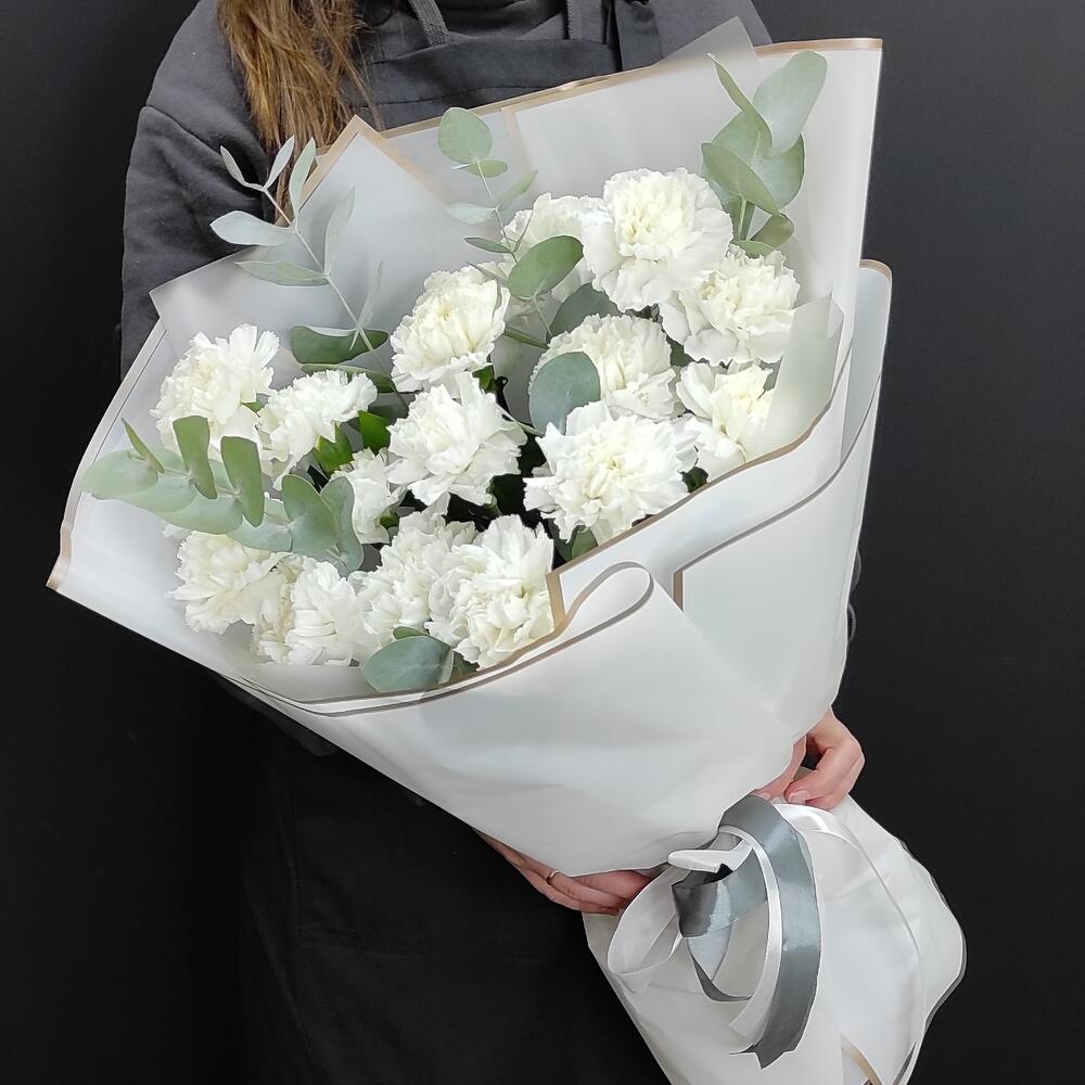 Диантус – 17 шт.Эвкалипт – 2 шт.Упаковка дизайнерская – 1 шт.