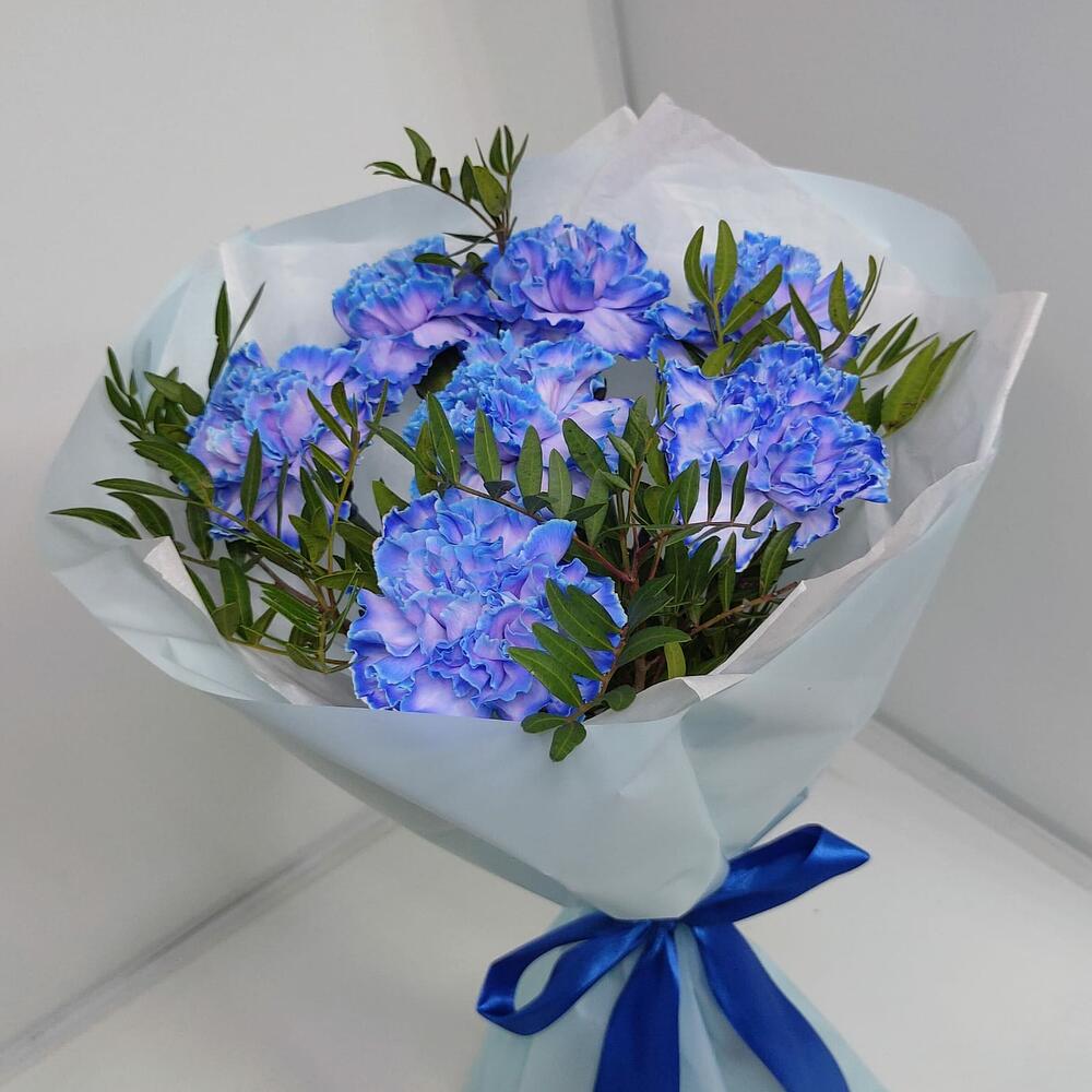 диантусы голубые – 7 шт.зелень фисташки – 1 шт.Дизайнерская упаковка – 1 шт.