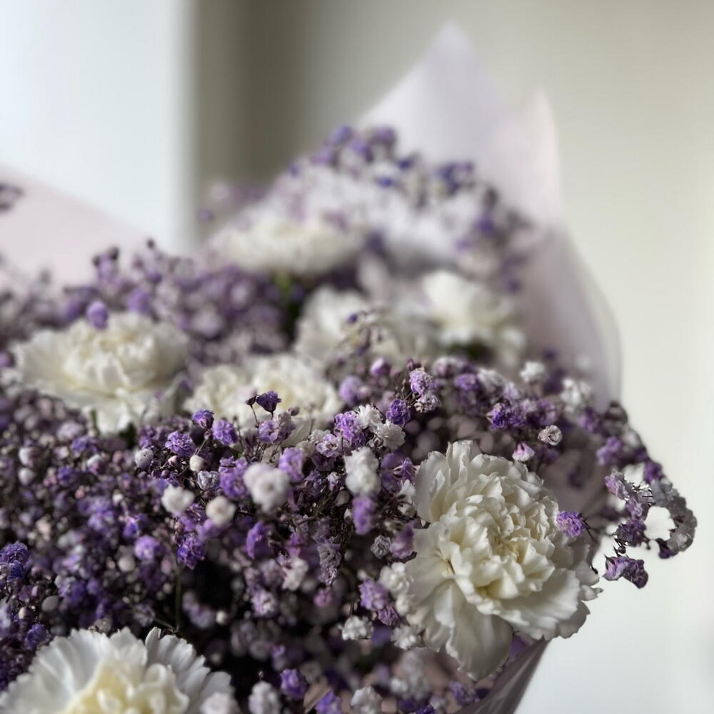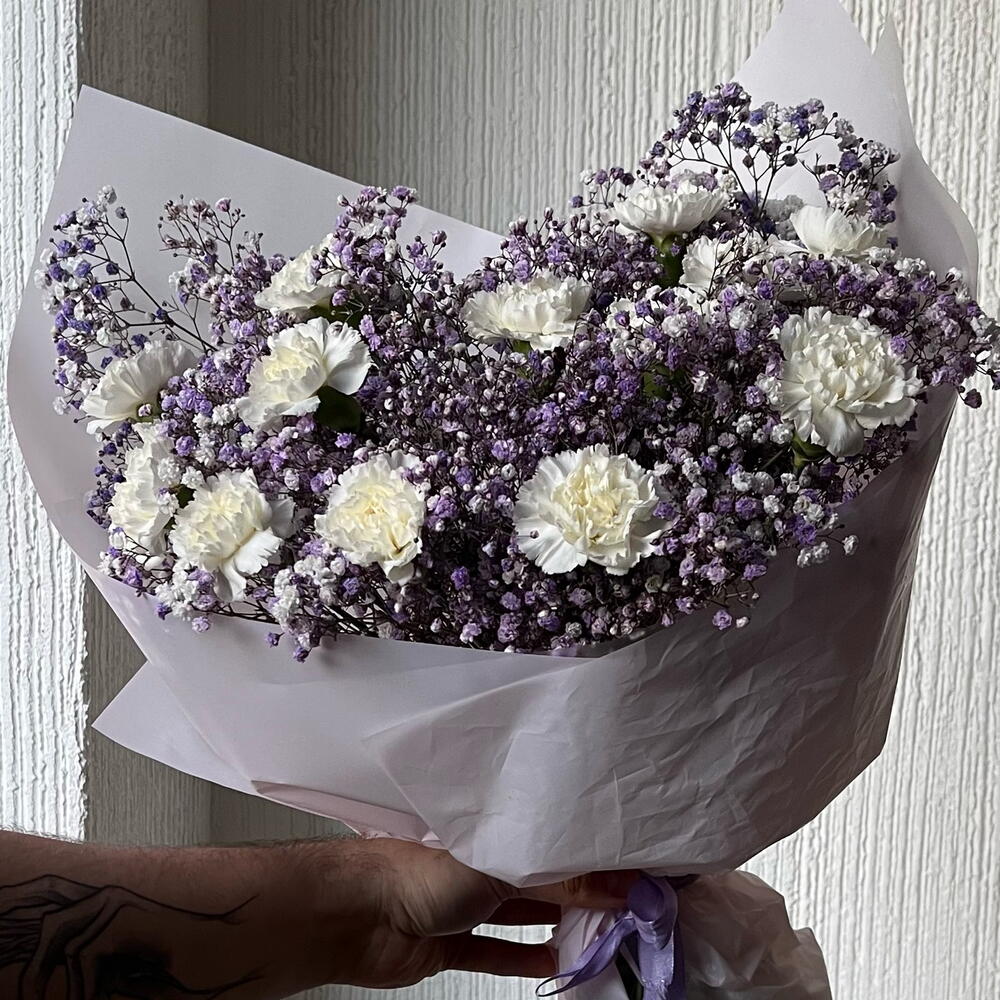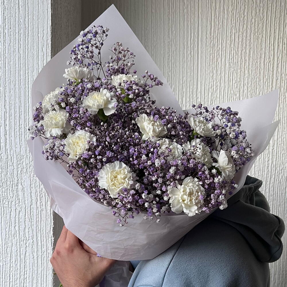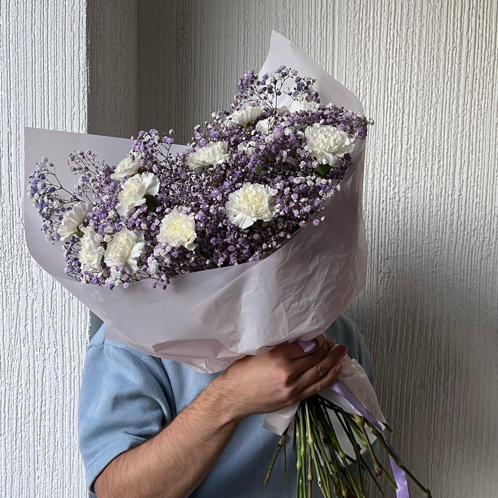 15 лавандовых гвоздик с эвкалиптом (букет N 24)