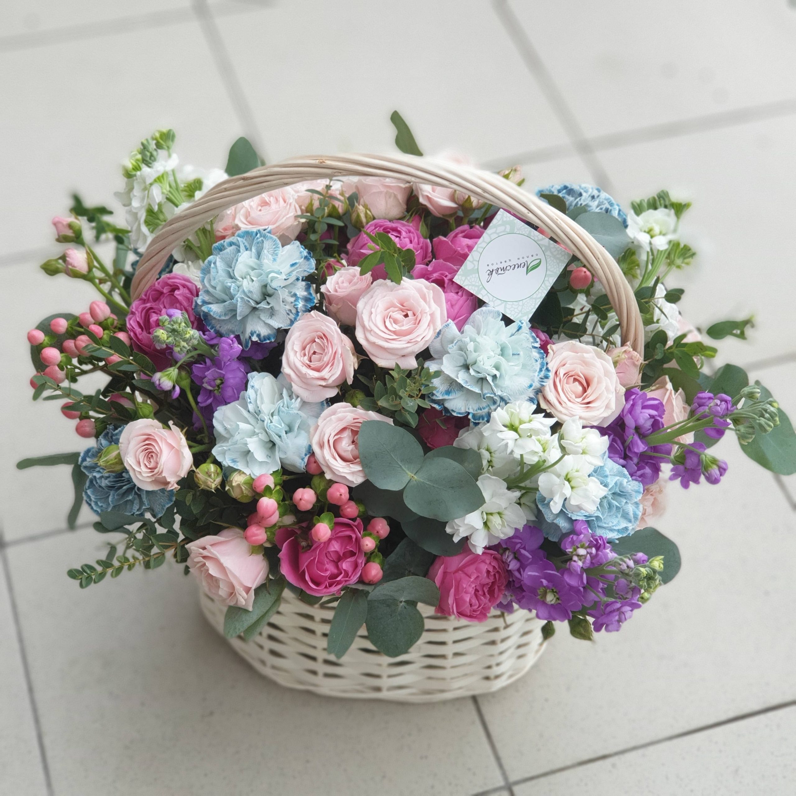 Гвоздики, Кустовые розы, Лизиантусы, Пионовидные розы, Розы