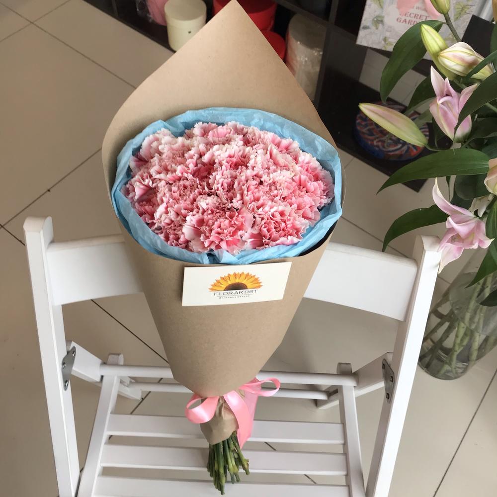 Лента атласная – 1 шт.Тишью – 1 шт.Крафт – 1 шт.Диантус розовый – 15 шт.