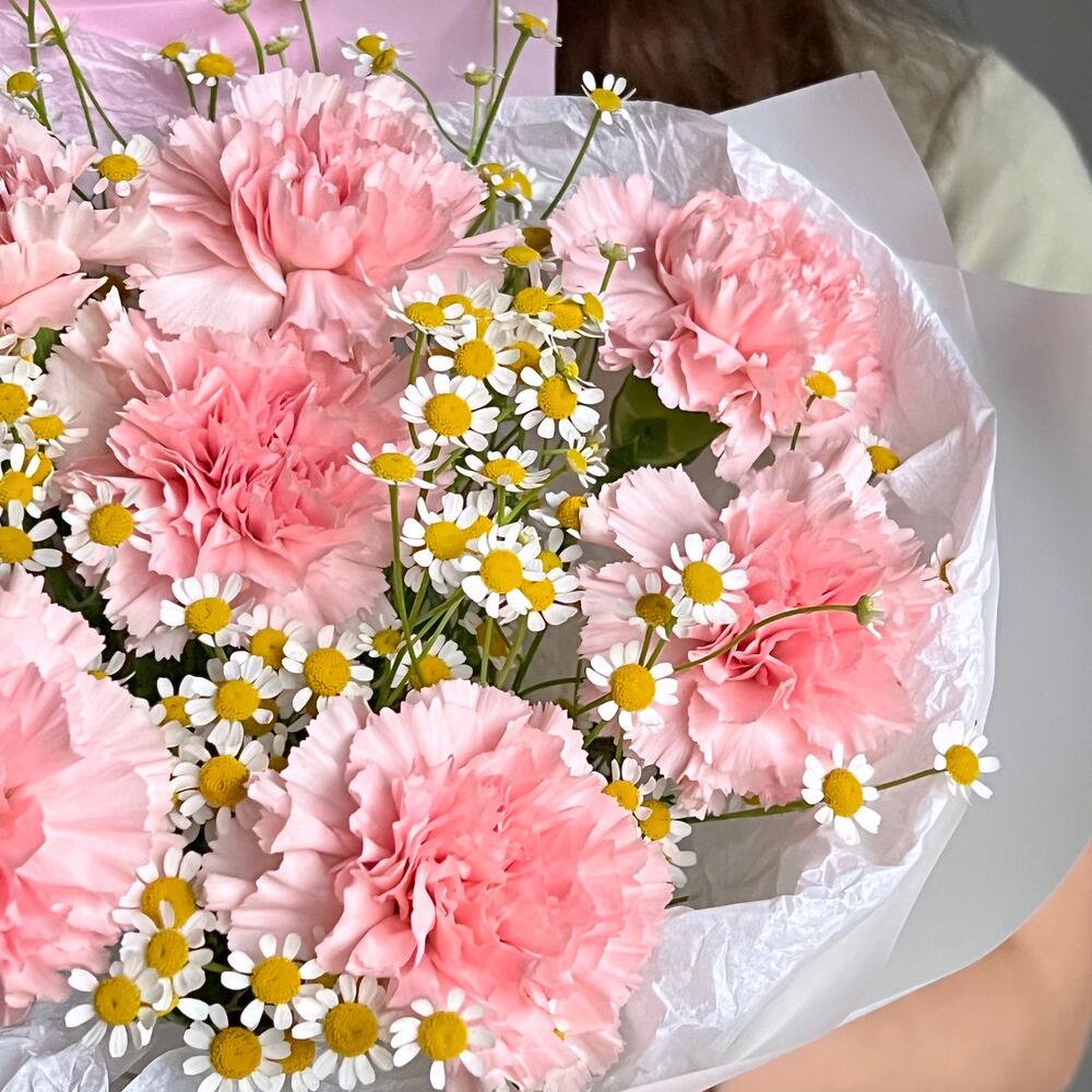 Воздушный букет в пастельных тонах с ромашкой, которая передает легкий аромат полей и нежной гвоздикой. За счет состава букет будет долго радовать своей красотой :)Все наши букеты доставляются упакованные и в воде!Не забудьте подрезать цветы НЕПОСРЕДСТВЕННО перед тем как ставить в вазу (подрезали и в течении 2-3 секунд ставите в воду). Не храните букет на прямых солнечных лучах и возле отопительных приборов, чтобы сохранить цветы как можно дольше.Обратите внимание на фото в полный рост с человеком, для понимания размера композиции, это фото есть в карточке товара 🙂