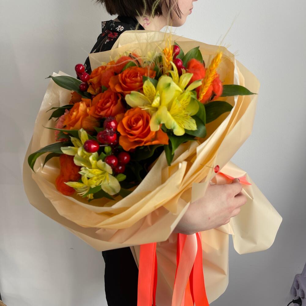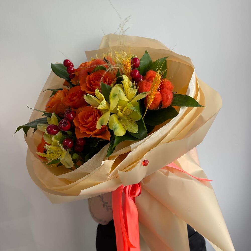 Уважаемые покупатели! Пожалуйста обратите ваше внимание на размер букета при заказе! Он учитывается вместе с упаковкой Чтобы наши прекрасные букеты дольше радовали получателя рекомендуем вам:⭐Обновить срез букета перед тем, как поставить его в воду⭐Ставить цветы в прохладную проточную воду ⭐Меняйте воду в вазу каждый день⭐Не забывайте подрезать цветы, перед тем, как ставить их в воду⭐Не ставить у отопительных приборов и на сквозняке Фирменный стиль наших букетов разработан специально так, чтобы упаковку не нужно было снимать, так как она придаёт целостность букету и прекрасно держится в вазе