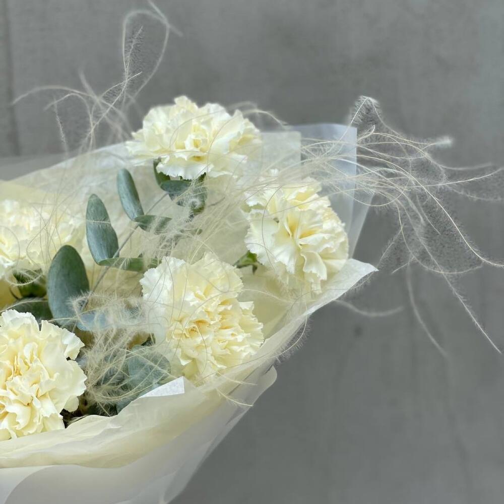 Диантус – 7 шт. Эвкалипт пучок – 1 шт. стипа – 2 шт. Упаковка дизайнерская – 1 шт.