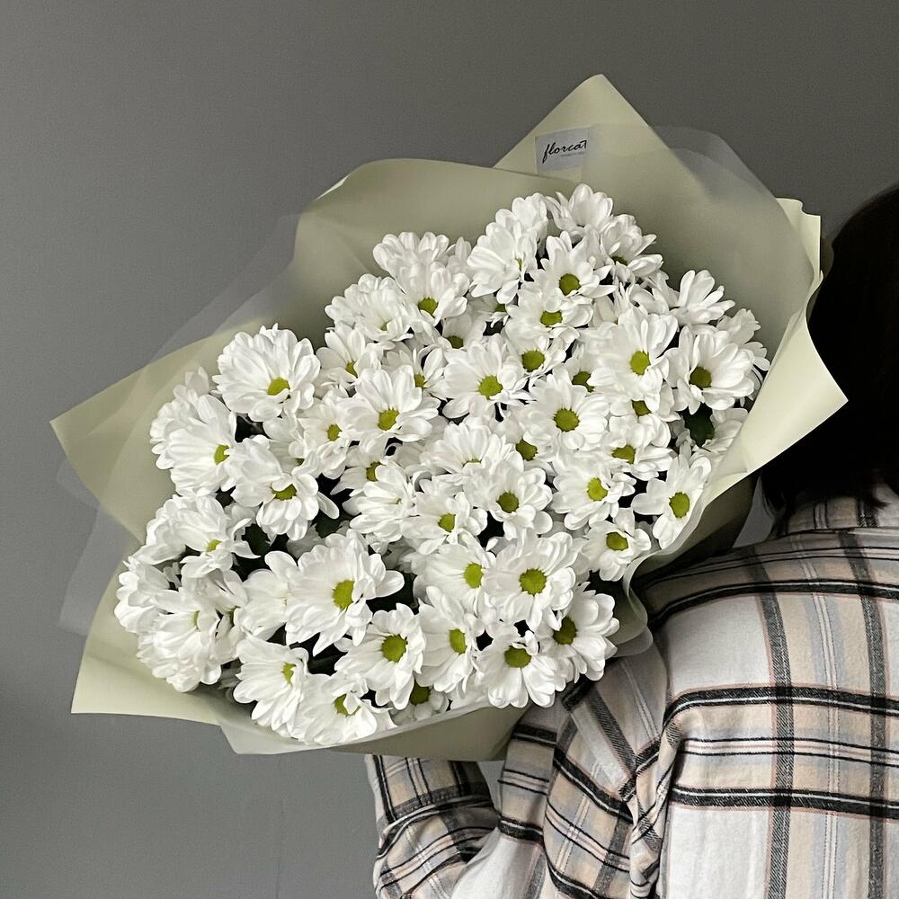 Букет из 11 белых кустовых хризантем Сантини с зеленью