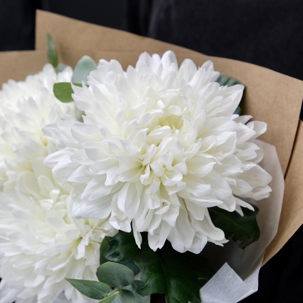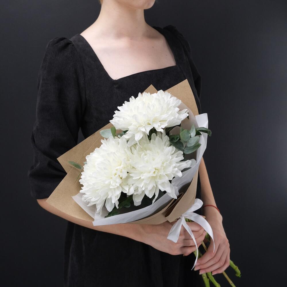 Хризантема – 3 шт.Эвкалипт – 1 шт.Упаковка – 1 шт.акваножка – 1 шт.