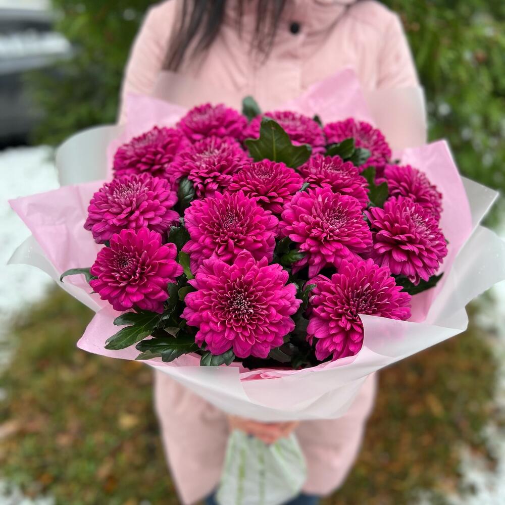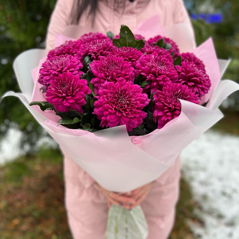 Букет из яркой Хризантемы 15 Шт (моно 003)