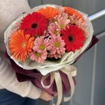 Хризантема – 4 шт. Гербера – 5 шт. Оформление – 1 шт.