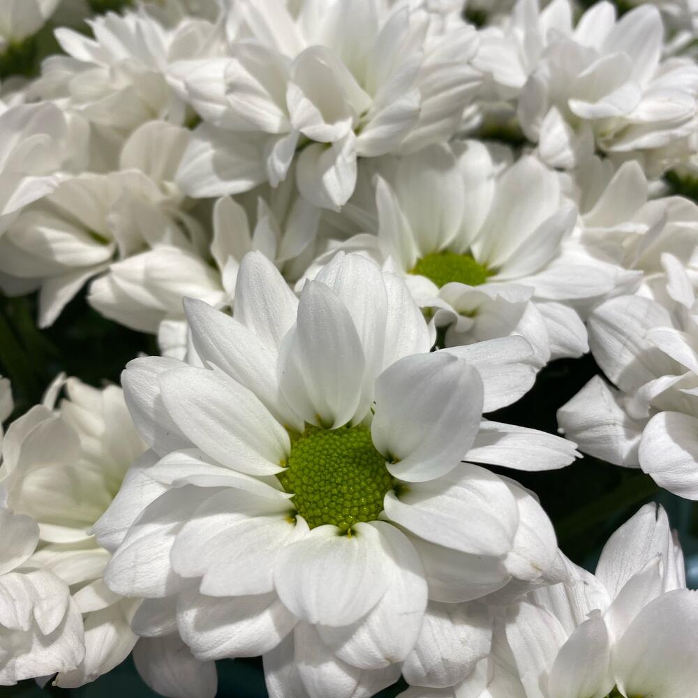 Хризантема кустовая – 7 шт. Лента атласная – 2 шт. Тишью – 2 шт. Салфетки – 4 шт. Слюда упаковка – 2 шт.