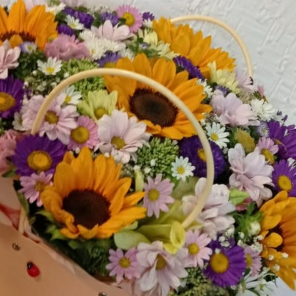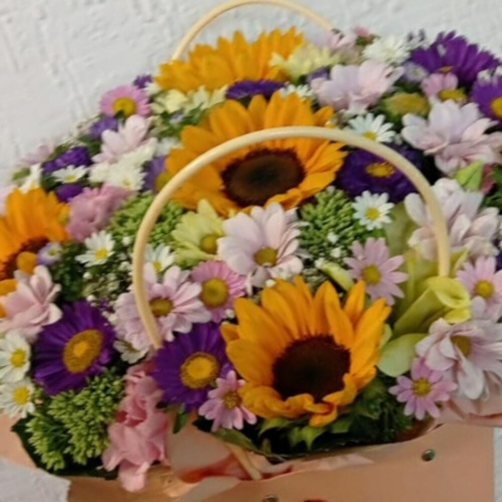 Хризантема кустовая – 5 шт. Подсолнух желтый – 5 шт.