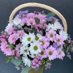 Корзина с кустовой хризантемой и статицей «Конфетти»