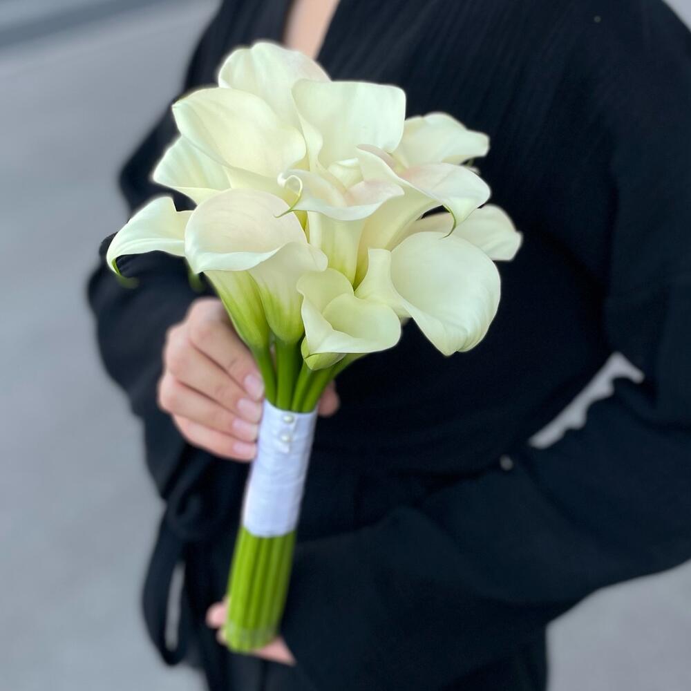 Самый популярный свадебный букет этого сезона – моно из калл, оформленных в атласную ленту!Каллы заказываются индивидуально под каждый букет, поэтому заказ лучше делать минимум за 8 дней до торжества