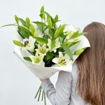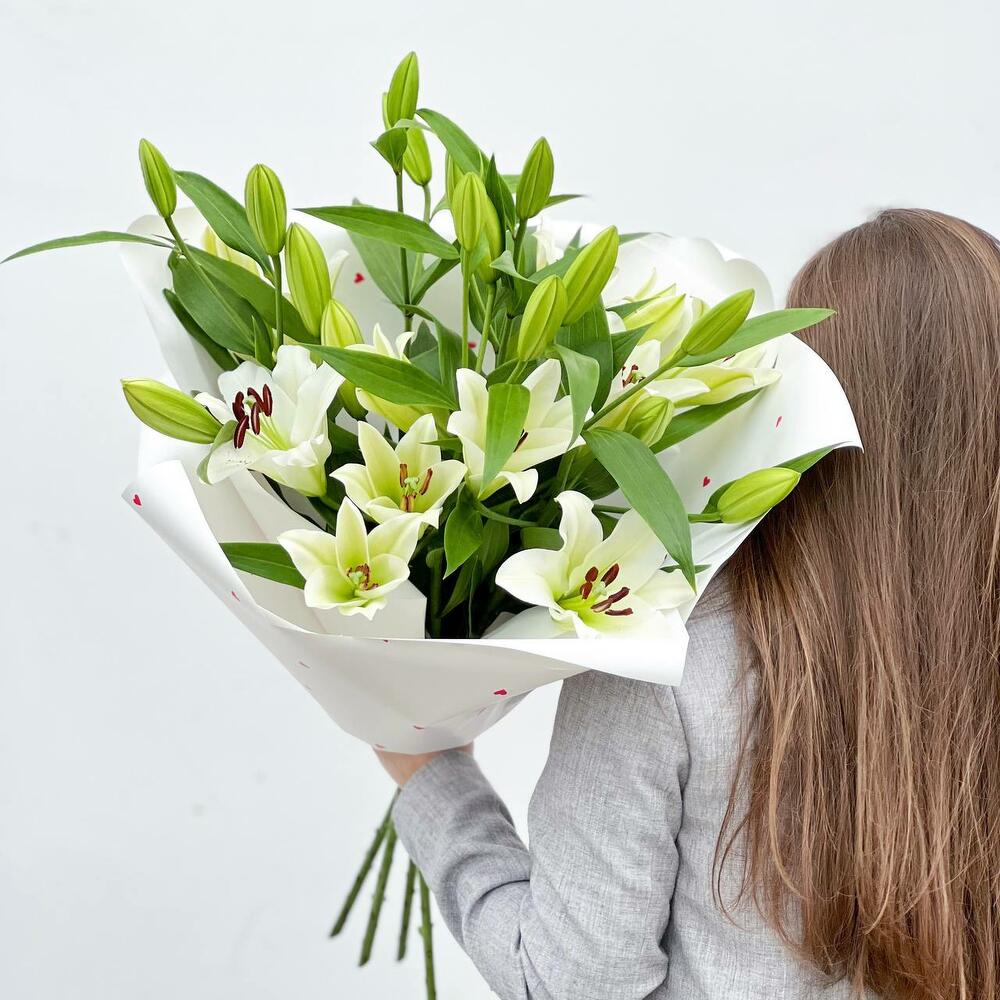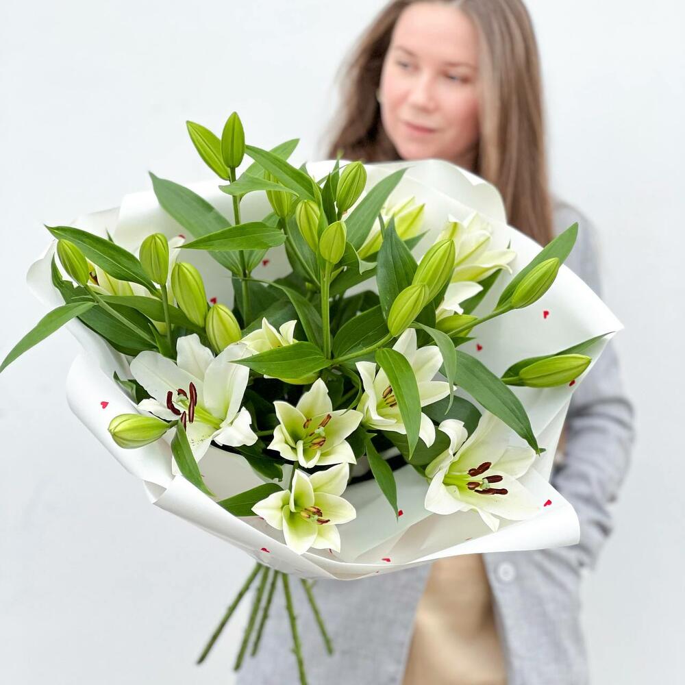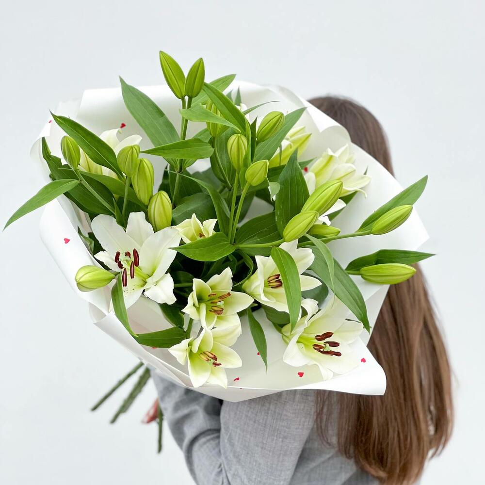 Объемный букет из белых лилий