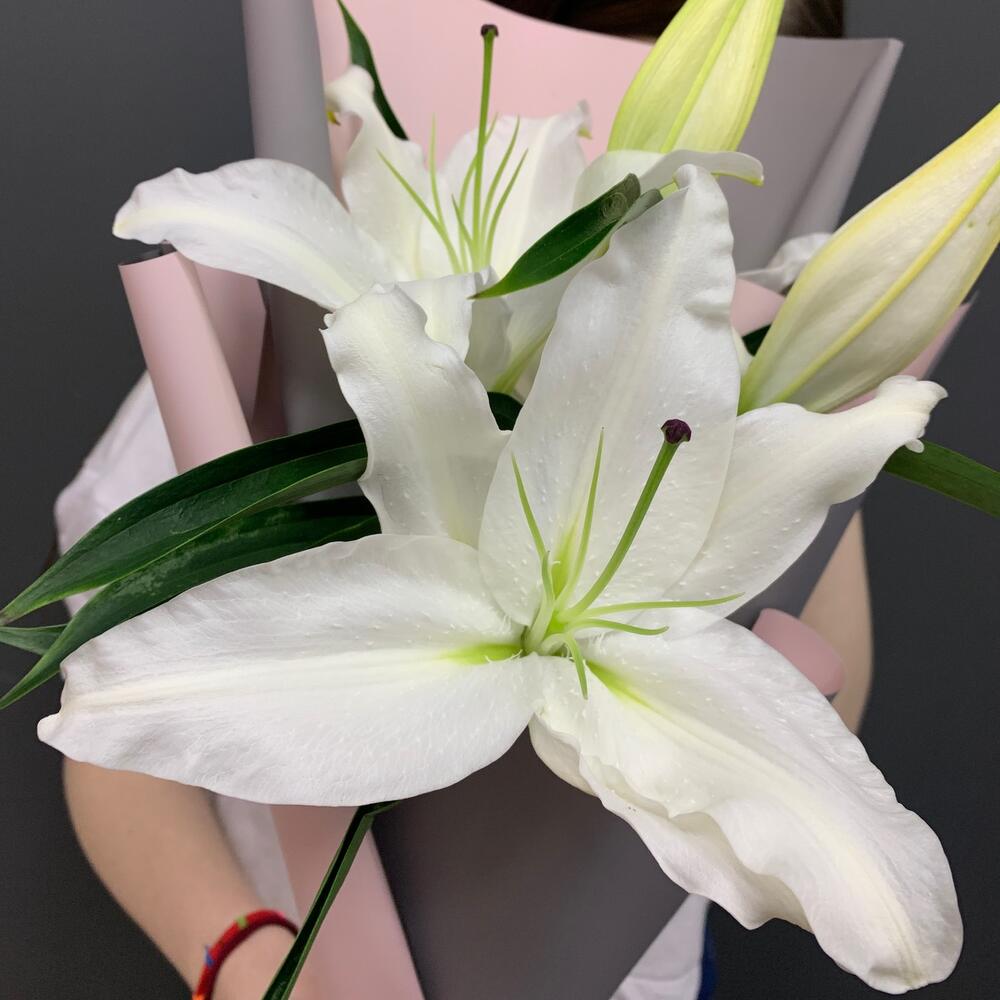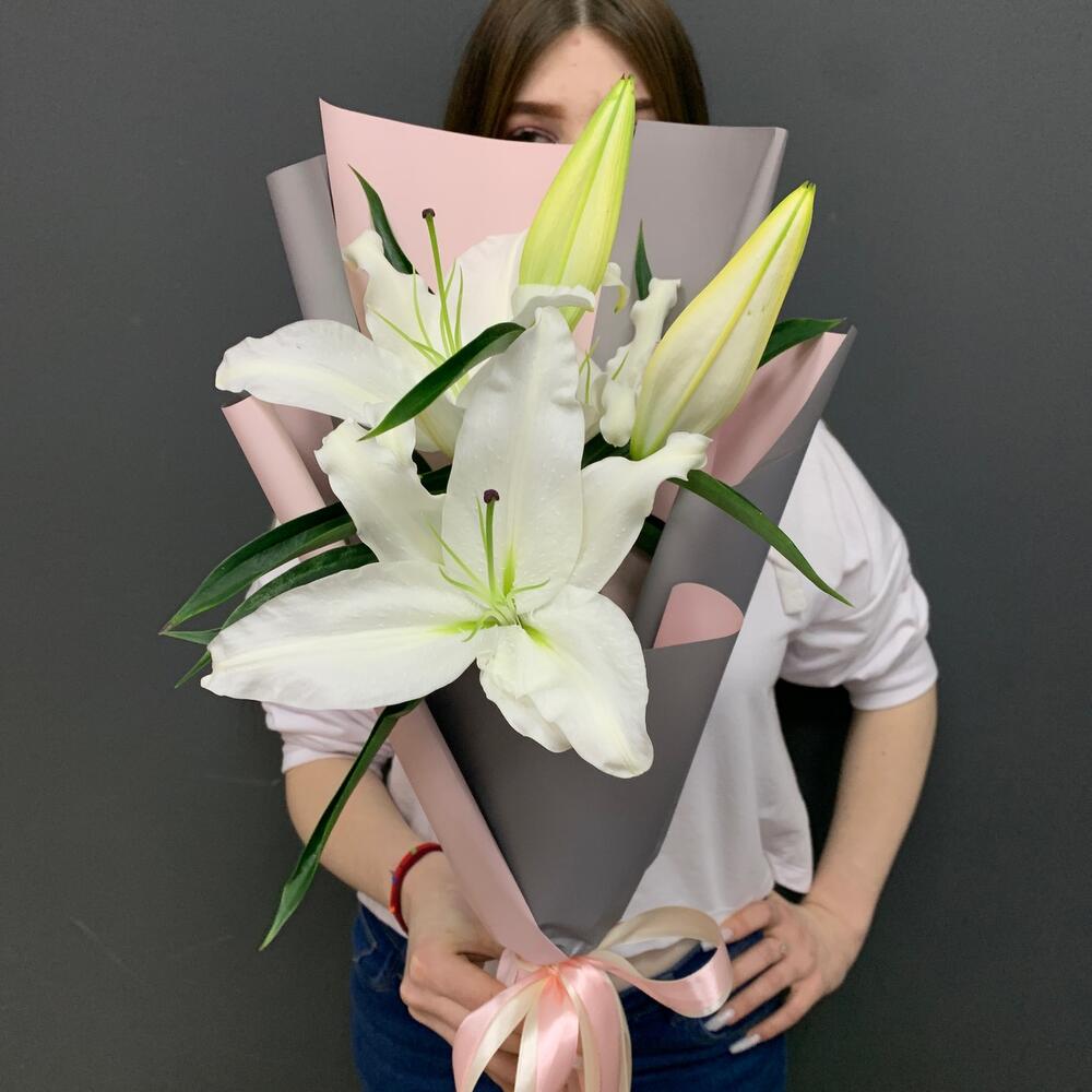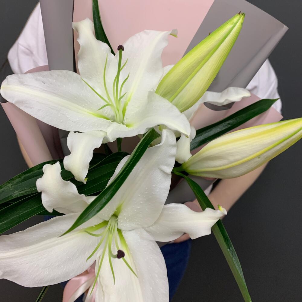 Лента атласная – 1 шт.Лилия белая – 1 шт.Упаковка корейская пленка – 1 шт.