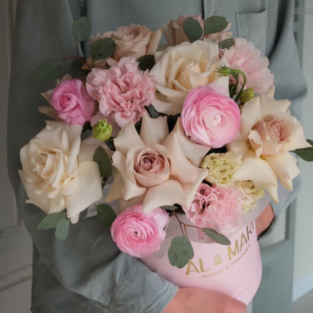 Гвоздики, Кустовые розы, Лизиантусы, Пионовидные розы, Розы