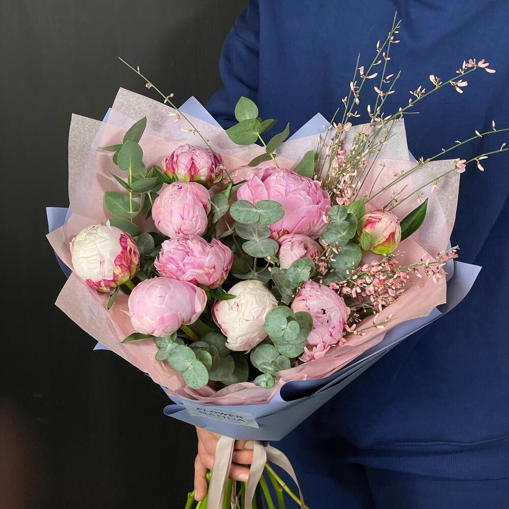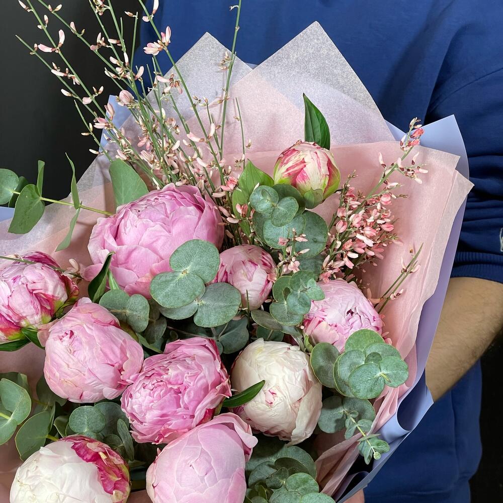 Букет из пышных пионов и ароматной генисты
