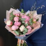 Упаковка – 1 шт.Гениста – 2 шт.эвкалипт синерея – 3 шт.пионы сара бернар – 9 шт.