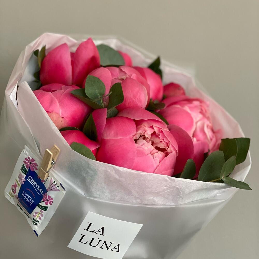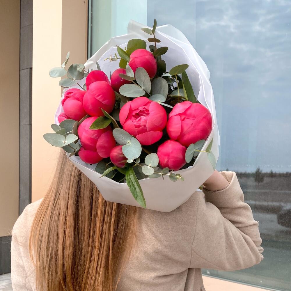 Монобукет из пионов с эвкалиптом