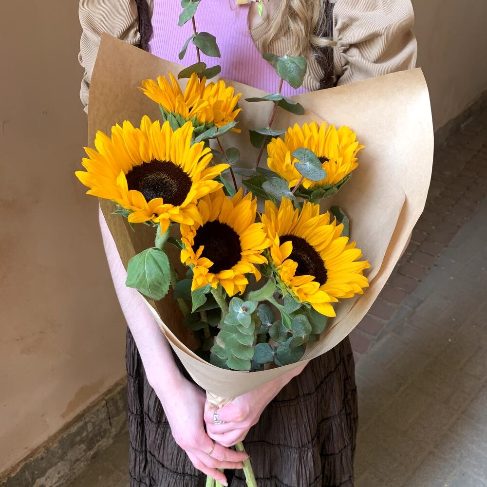 Эвкалипт – 3 шт.Подсолнух – 5 шт.Крафт упаковка – 1 шт.