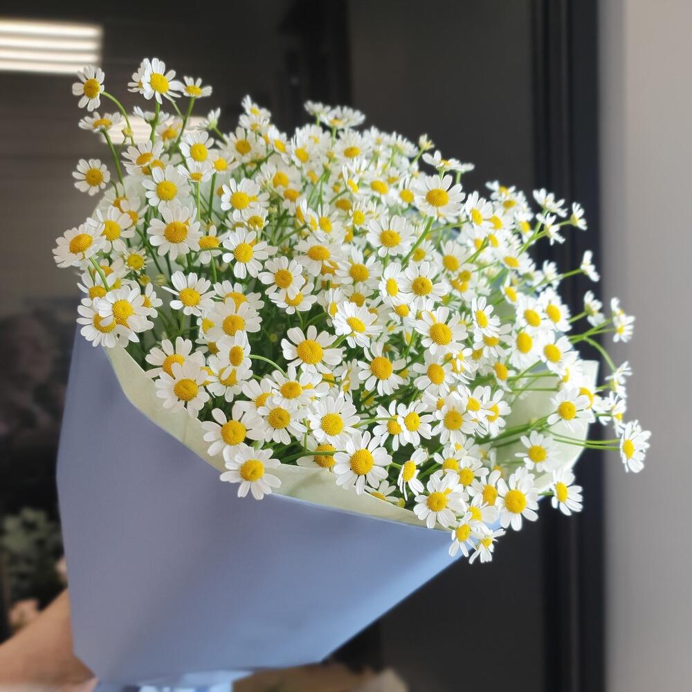 Упаковка дизайнерская – 2 шт.Матрикария (Ромашка Камила) – 10 шт.Лимониум – 1 шт.