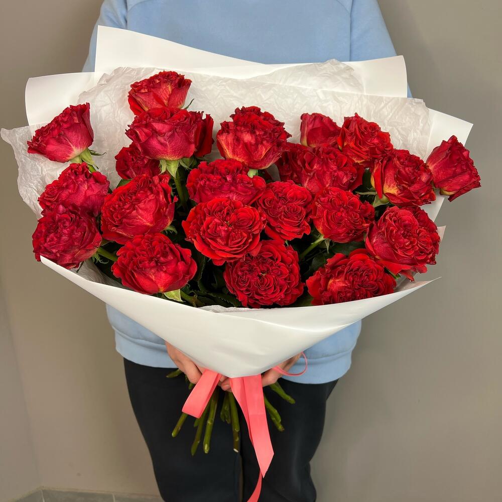23 высоких красных роз с зелёной сердцевинной