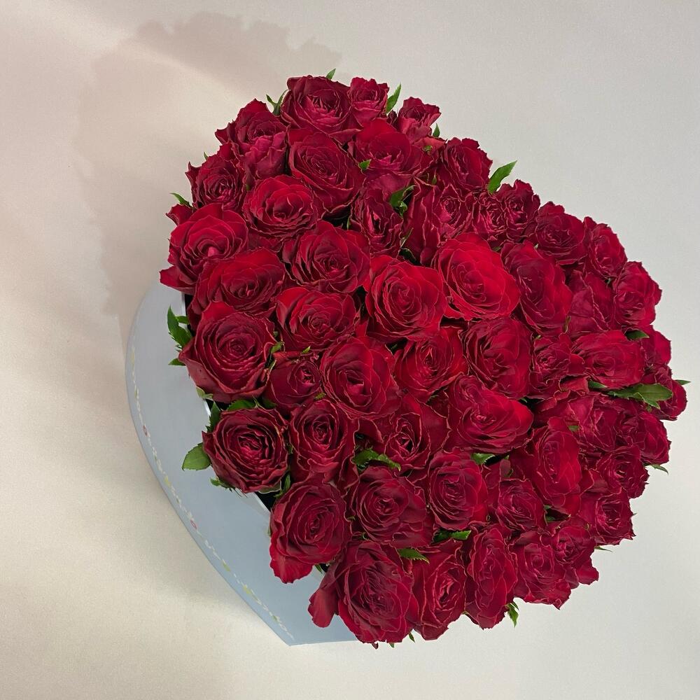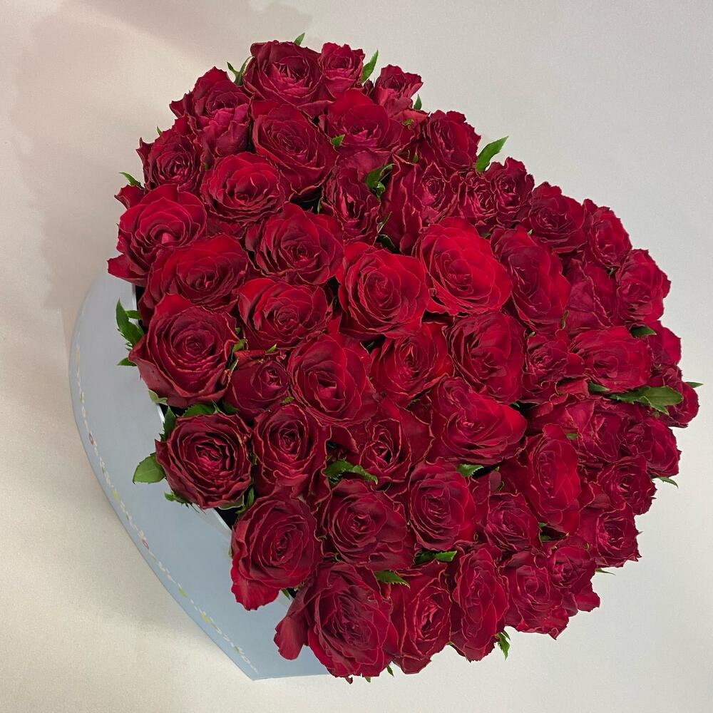 Роза – 51 шт.Коробка сердце – 1 шт.Оазис флористический – 2 шт.