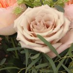 Георгина – 2 шт.Роза кустовая пионовидная – 1 шт.Роза пионовидная – 2 шт.Роза сортовая – 2 шт.Амми – 1 шт.Эвкалипт – 4 шт.фисташка зелень – 2 шт.Лента атласная – 1 шт.