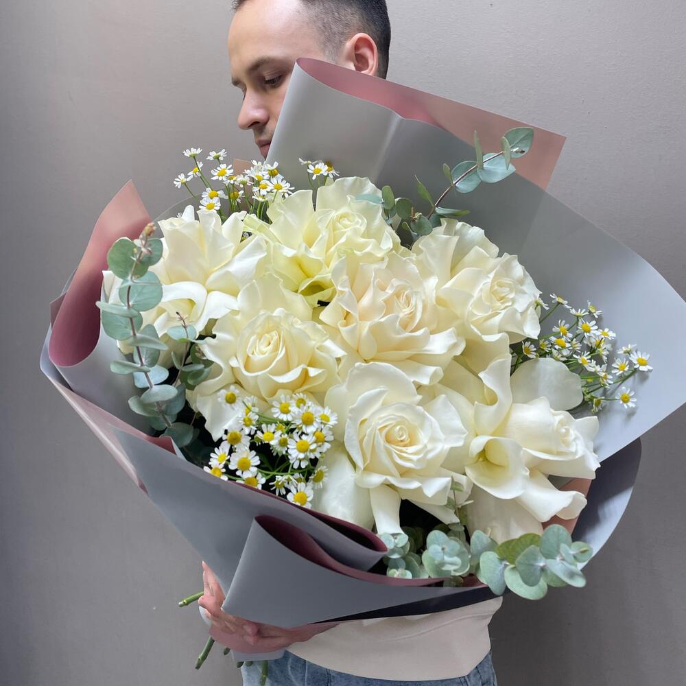 Авторский букет с белой французской розой