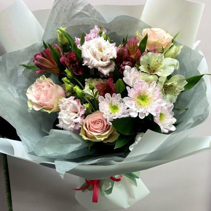 Букет Пудра из кустовой розы, эустомы и озотамнуса