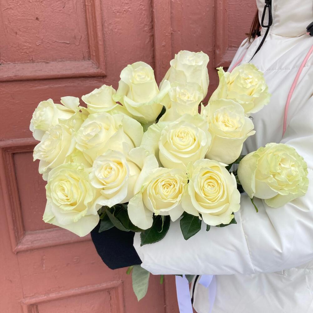 Роза Эквадор Мондиаль – 15 шт.Лента атласная – 1 шт.подкормка для срезанных цветов – 1 шт.