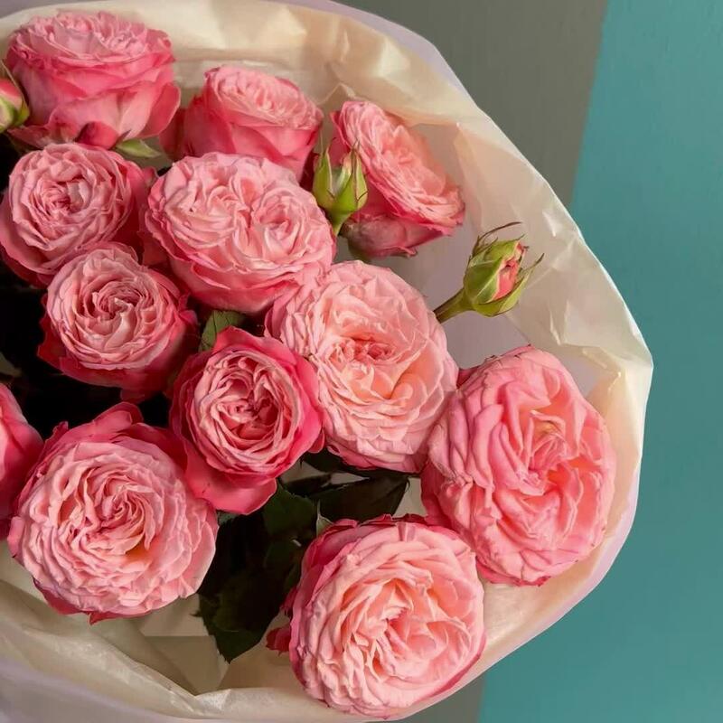 Упаковка дизайнерская – 2 шт.Кустовая роза пионовидная – 3 шт.