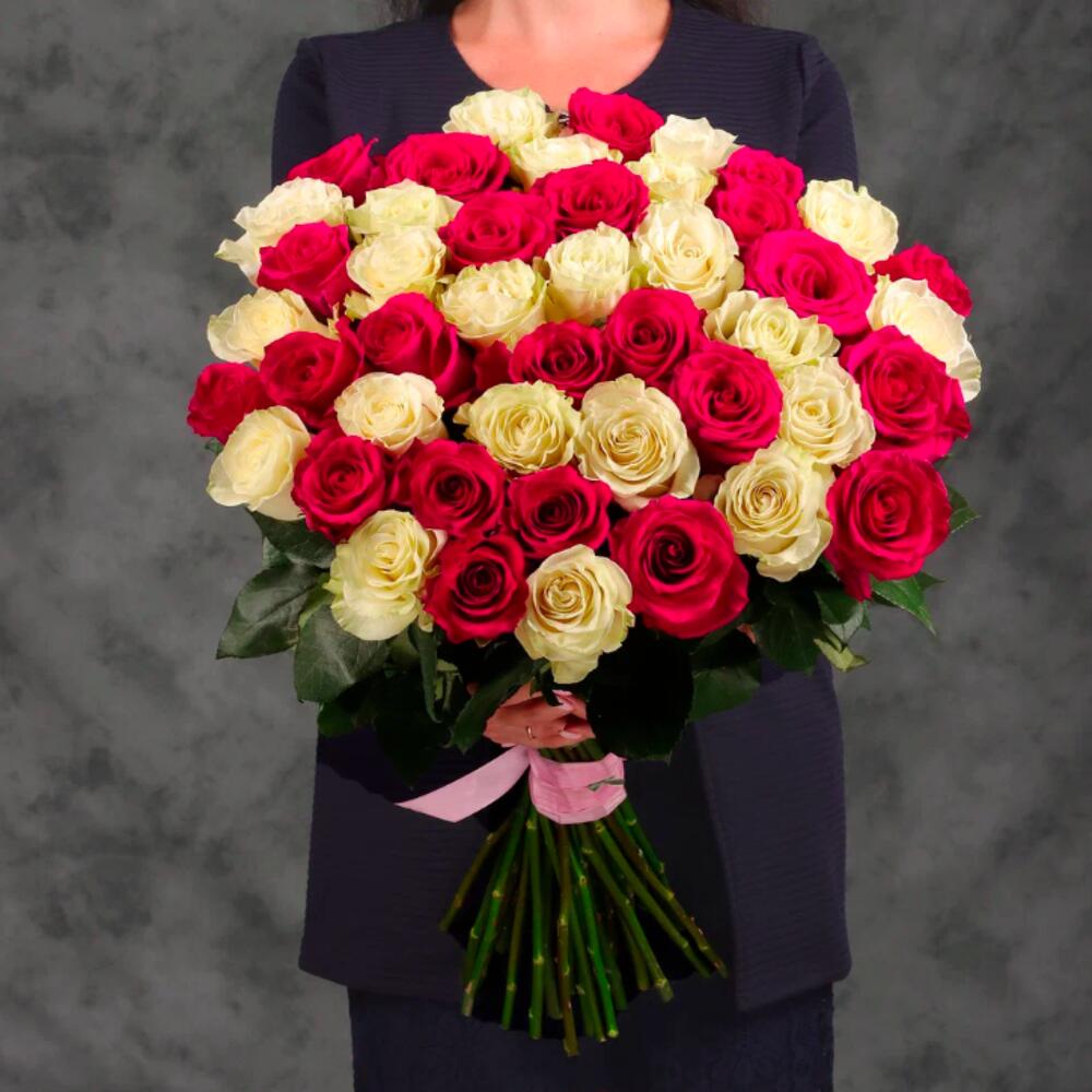 Букет 45 белых и розовых роз