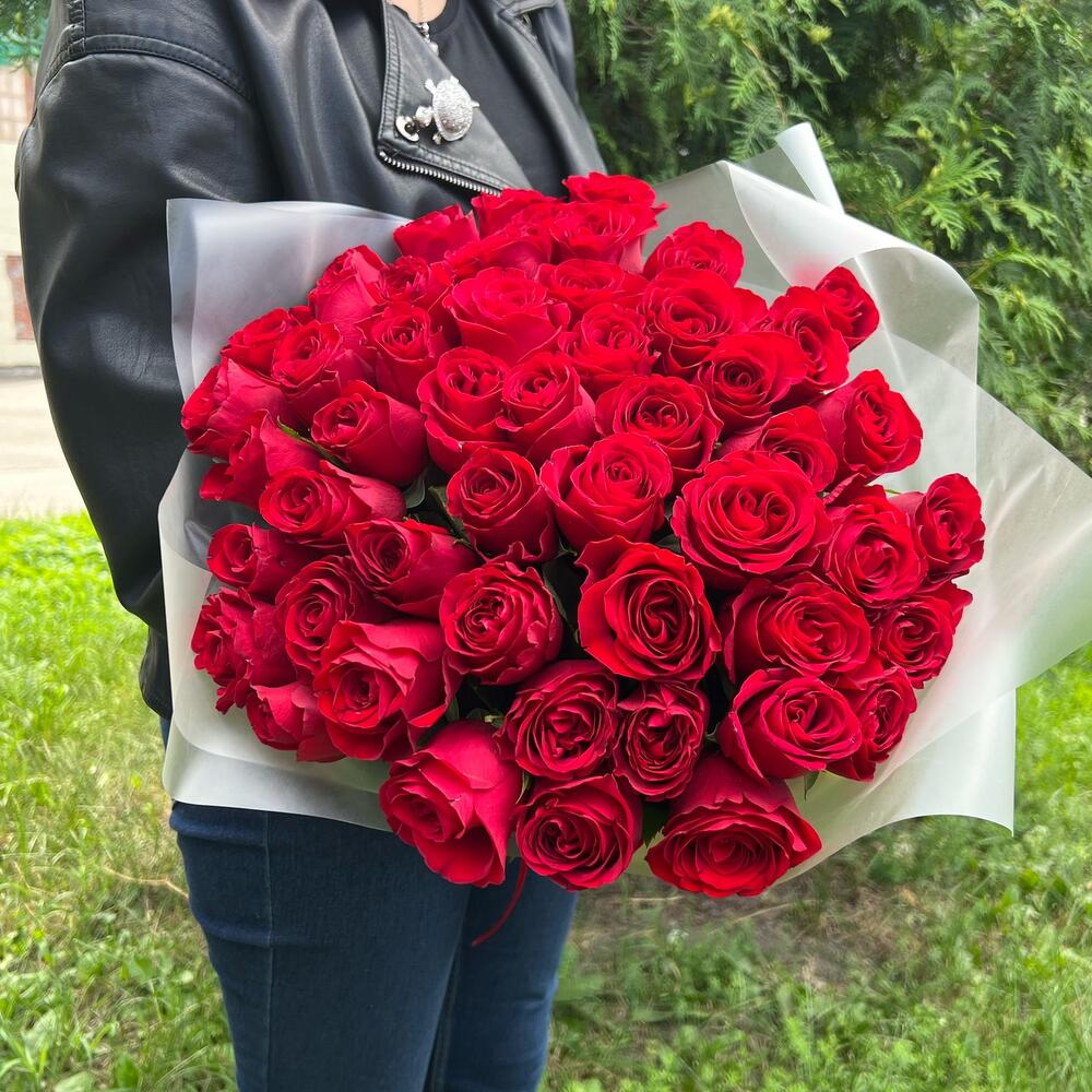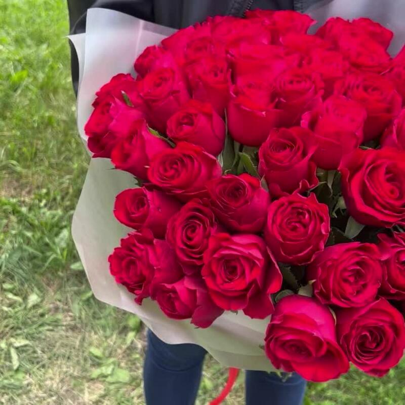 Роза красная 40 см – 51 шт.Пленка матовая – 2 шт.
