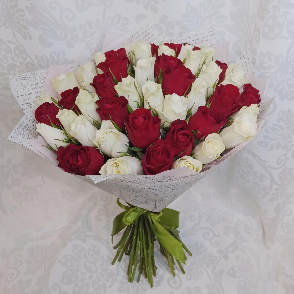роза кения – 51 шт.Дизайнерская упаковка – 1 шт.
